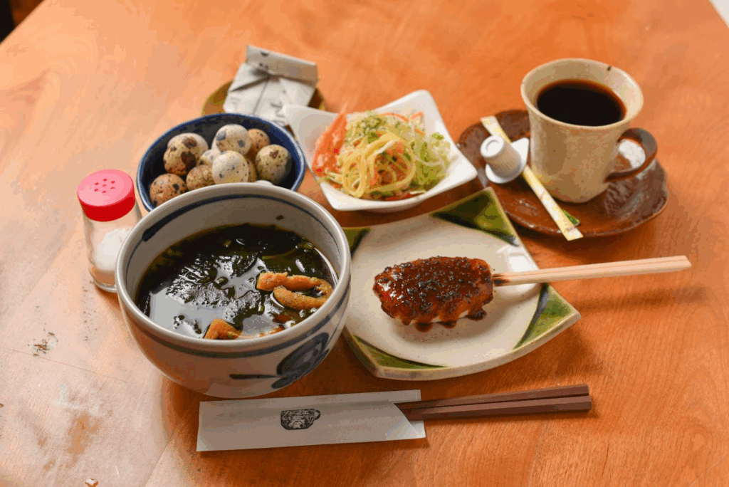 ★営業時間内モーニング、うずらの卵の食べ放題サービスが付いています。八雲団子さんのみたらし団子好評発売中!